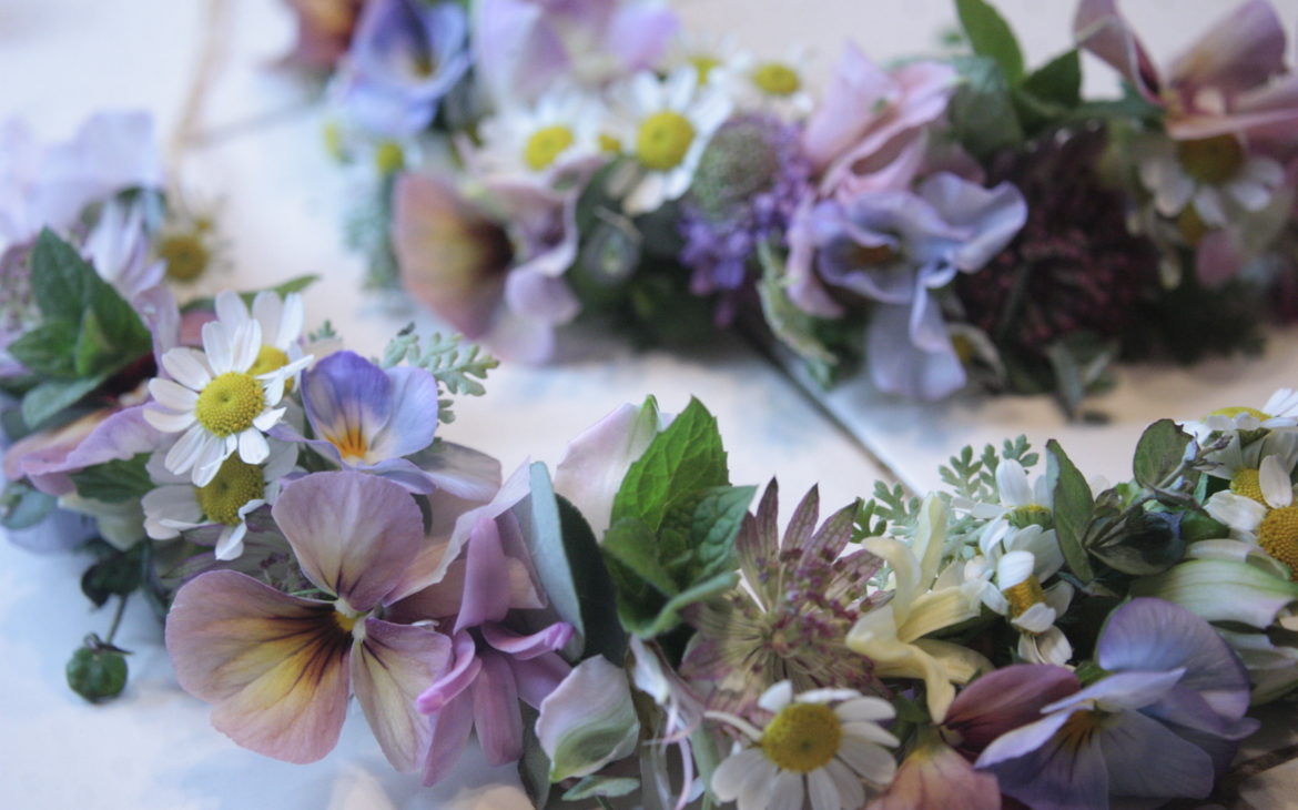 ワイヤーをいっさい使わずに手作業で仕上げる花冠とレイです。